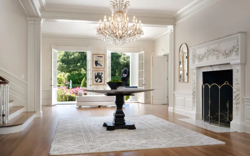 Located at 401 El Cerrito Avenue in Hillsborough, with its Neoclassical Georgian architecture, the home greets you with majestic columns and an impeccably laid driveway, the facade exuding grandeur. Meticulously rejuvenated with the finest fixtures, the home encompasses 11 bedrooms, nine full bathrooms, and five half bathrooms, spread across four levels, with high ceilings throughout. Timeless accents such as intricate crown molding, resplendent wood floors, and dazzling chandeliers seamlessly marry with contemporary elements and sleek lines, epitomizing sophistication.
